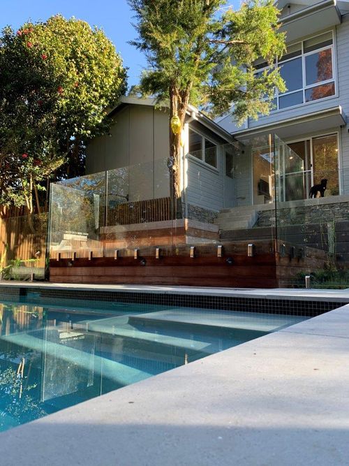 We decided to pursue the complying development route and this paid off in terms of the cost of documentation and a reduced timeline from design to build. All up the project was completed in about a year from concept to pool commissioning. The concept design stage was crucial as a number of different layouts and locations were explored. The rectangular pool was balanced by generous areas of split-level decking, lawn and garden.